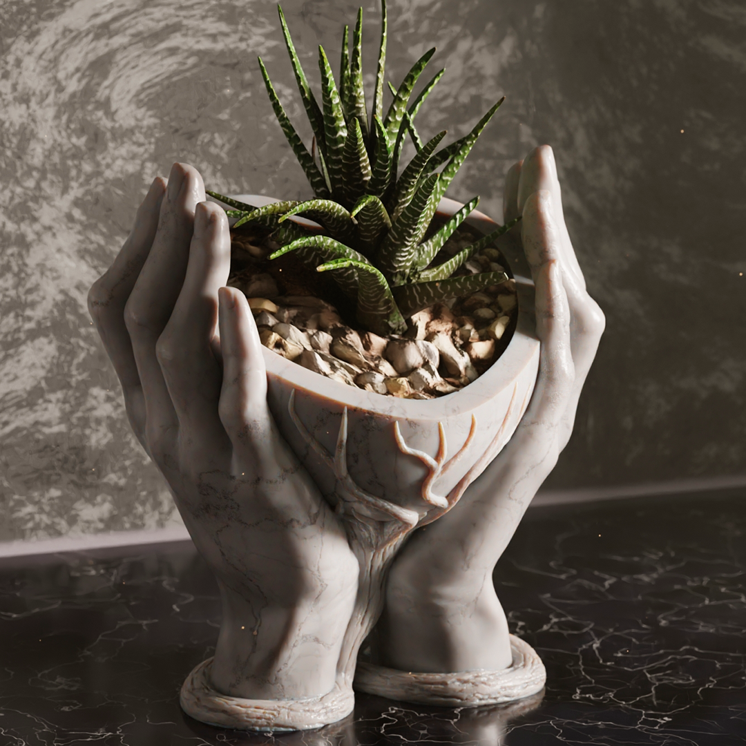 Com um formato artístico de mãos segurando um coração, ele representa cuidado, proteção e afeto, tornando-se um destaque especial em qualquer ambiente. Ideal para acomodar suculentas, plantas naturais ou artificiais, trazendo charme e personalidade para salas, escritórios, quartos e espaços criativos.